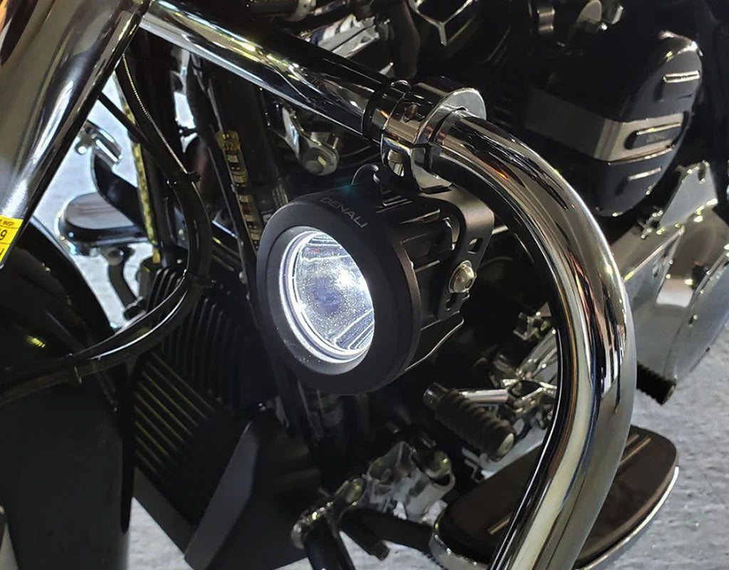 This DENALI handlebar clamp light mounting kit allows you to mount any DENALI LED light set on engine guards, frame tubes or any tube with a diameter of 32mm - 38mm (1.25" to 1.5"). These light fixture brackets feature a unique octagonal internal profile that allows the clamps to securely grip a wide range of pipe diameters and feature an optional fully rotating mounting plate to create a highly versatile and robust light mounting solution.