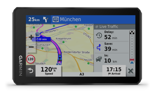 - Météo en direct, trafic en direct et plus encore via l'application Garmin Drive